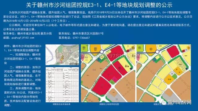 赣州晒房网讯 小编获悉,为加快沙河组团产城融合发展,提升组团人气,增强集聚效益,赣州市沙河组团控规E3-1、E4-1等地块将进行规划调整,目前项目调整内容正在进行公示,公示日期为2018年10月12日-2018 年10月22日(七个工作日)。