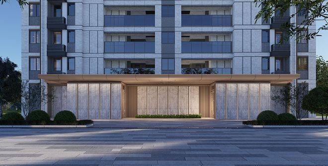 社区采用简约现代的设计理念,建筑风格简洁大方,立面采用大面积玻璃窗,阳台近乎落地窗。局部使用金属线条,配合仿石多彩漆,使得建筑立面体块清晰。顶层外挑飘板使建筑立面更加清晰,层次感更丰富。