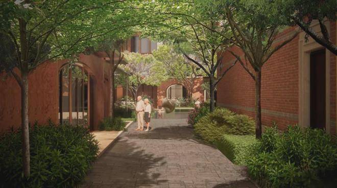 “邻里关系”是景观设计的主要考量因素之一,设计师以上海人的精神底色为切口,将传统里弄文化融入园林肌理,充分发掘景观空间的社交属性,在房前屋后营造出温馨而熟悉的氛围,提供足够的空间用以停留与交流,从而增加人与人的亲密互动,增加参与感与归属感。