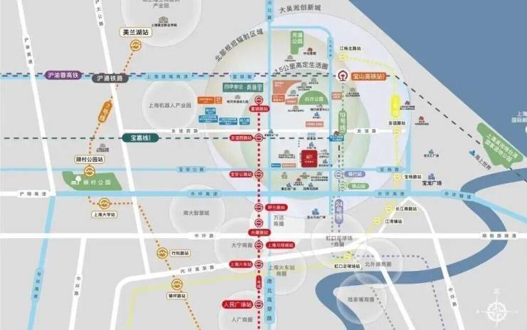 5条地铁:1号线(宝安公路站),19号线(铁山路站,在建),宝嘉线(杨行站,规划中),24号线(杨行站,规划中),22号线(原规划番号)直抵全城