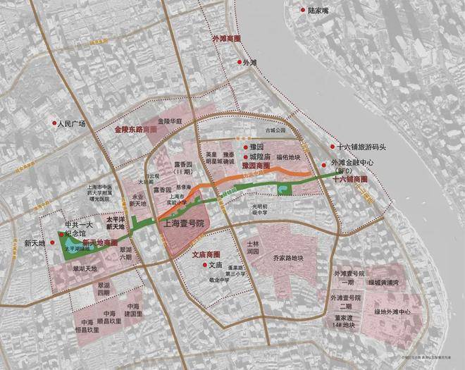 地处上海中心城内保留最完整、城市更新规模最大的以上海传统地域文化为风貌特色的历史文化风貌区。距离新天地直线距离约800米、陆家嘴距离约2.5公里、外滩直线距离约1.4公里。