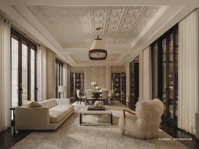 契合中国传统院落居住哲学理念,以“外紧内松”空间设计手法,对风貌别墅空间尺度进行当代拓新,让空间服务于生活。外紧-通过外部百年巷道肌理活化、建筑错落排布景筑交融,打造美而精的体验;内松-宅院内以多重庭院、立体花园、大落地窗等实现室内尺度拓新,给家人更多停留空间、打造建筑会呼吸的松弛感。