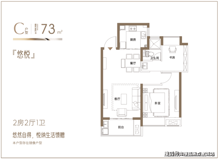 73㎡悠然两房格局方正,布局合理,73㎡的面积设计有一卧室、一书房、一餐厅、一客厅、一厨一卫还带一阳台,满足日常生活所需,且空间充裕不显拥挤,这个户型本批次只有两套,真正的手慢无!