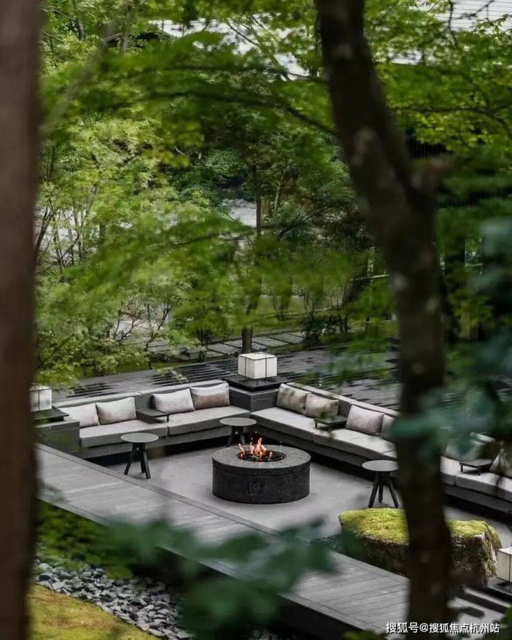 园内规划了青染归宇、庭光望岳、抱水洞天、听涛栖隐、逐影穿林等多个景观节点。苔林景观以乌桕林与苔藓营造自然野趣,琉璃光院借鉴日本琉璃光院意境,用红枫打造雅奢幽静的氛围。