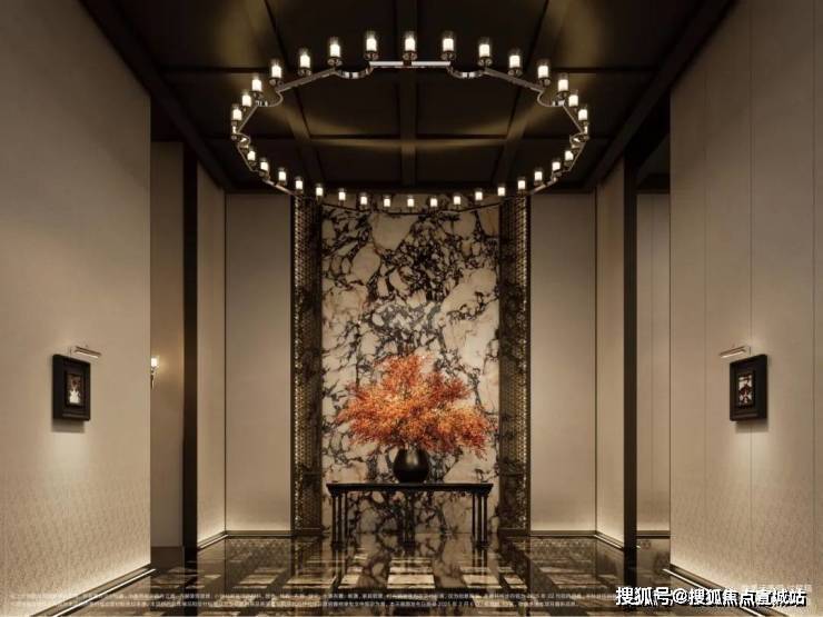 材料选用意大利石材,BVLGARI HOTEL大理石,铝型材塑型红,四层金属网格墙面以及梧桐叶金属屏风等,打造独属老静安的记忆符号,高奢定制,市区豪宅调性拿捏!