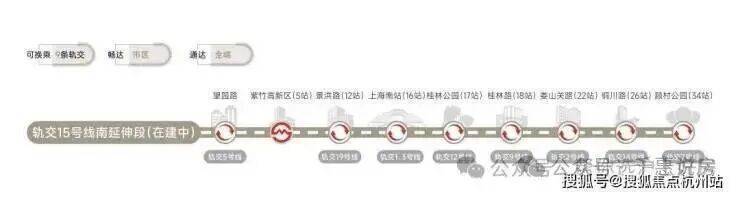轨交网络:5号线、15号线南延伸段(在建中)、市域嘉闵线南延伸段(规划中)、沪乍杭高铁(规划中)及南枫线(在建中)