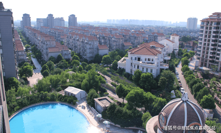 泗泾绿中海占地4.7万方,由9栋16-30层的新中式住宅组成。项目外立面采用的是天然石材和真石漆,屋顶采用四面斜坡设计。
