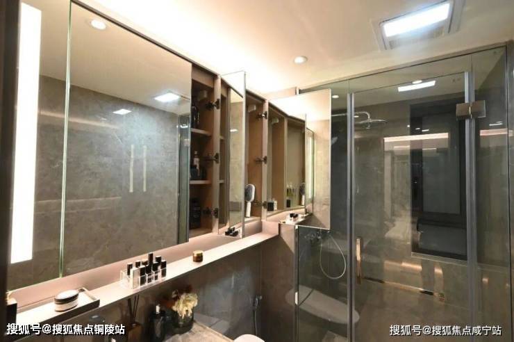 最后值得一提的是,项目还有很多个性化定制设计,包括防雾镜、美颜灯、电热毛巾架、岛台轨道插座(约93㎡户型)、预留美妆冰箱等。