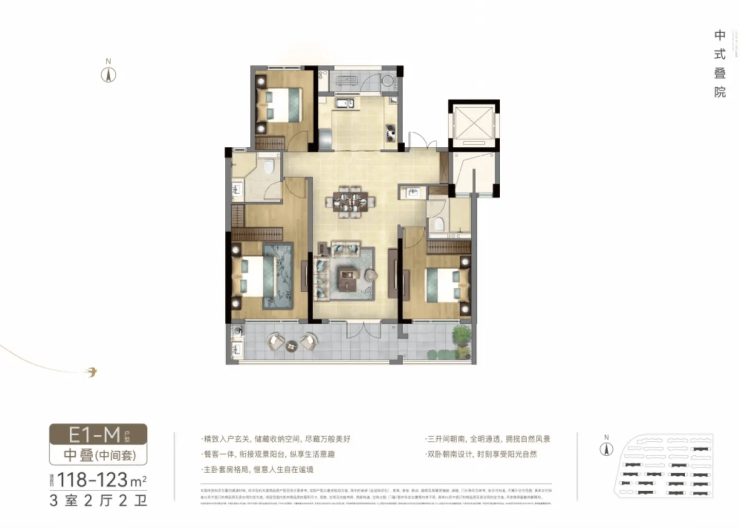 项目洋房采用新亚洲风格设计,大面积玻璃幕墙搭配金属线条,通透轻盈,既保证了节能环保,又创造了270°的观景视野。叠院则传承白墙黛瓦的中式美学,通过“层层退台”设计,实现“层层是花园,户户享园林”的居住体验。下叠赠送约60㎡地下空间和约40㎡私家庭院,上叠配置双露台与阁楼,中叠同样拥有超豪华露台,堪比空中别墅花园。无论是追求庭院生活的家庭,还是注重居住私密性的高端客户,都能在这里找到心仪的房源。