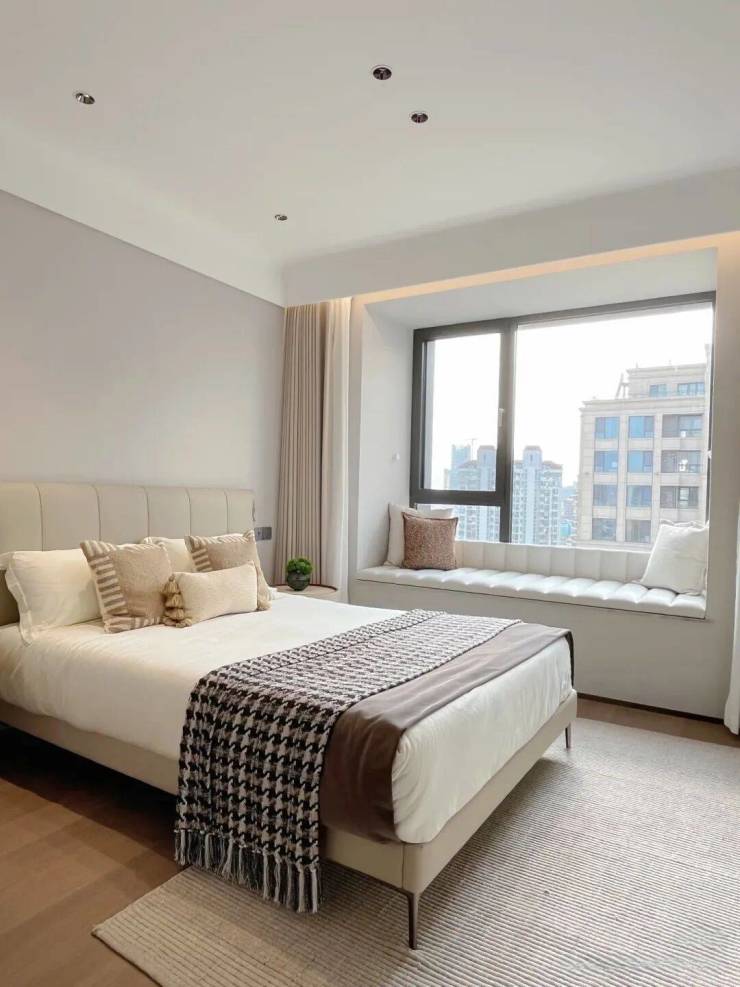 ◎面宽约4米主卧套房:配备南向观景飘窗、独立卫浴及收纳衣柜,在慵懒居家时,在阳光的挥酒下,勾勒出生活的情浓与舒适
