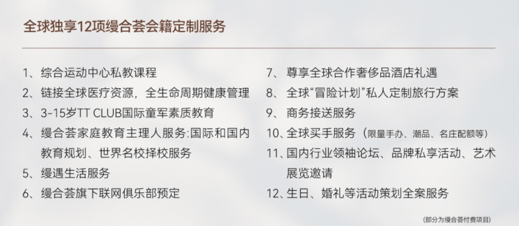 深谙当代世界公民对“第二精神空间”的需求,古北99打造超大商业地带,采用中式建筑风格和功能规制,与京城十大会所之一——缦合北京的「华府会」同源,有社交、商务、运动、志趣、亲子5大主题,涵盖精致私宴、红酒雪茄吧、恒温泳池、健身房、儿童培训、咖啡休闲、多功能厅等,并链接12项全球顶级资源,从运动、教育、旅行、医疗等多维度,为古北纯粹圈层寻回心中的归属。
