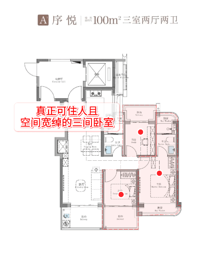 第一,招商序这个建面约100㎡的3阳台产品,是错过不会再有的产品了。