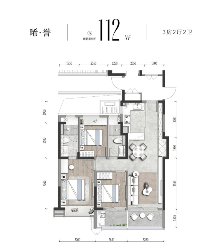 在售建面约90-104-112-119㎡3房