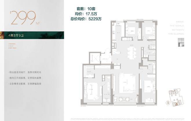 299㎡,4房3卫,单价17.5万