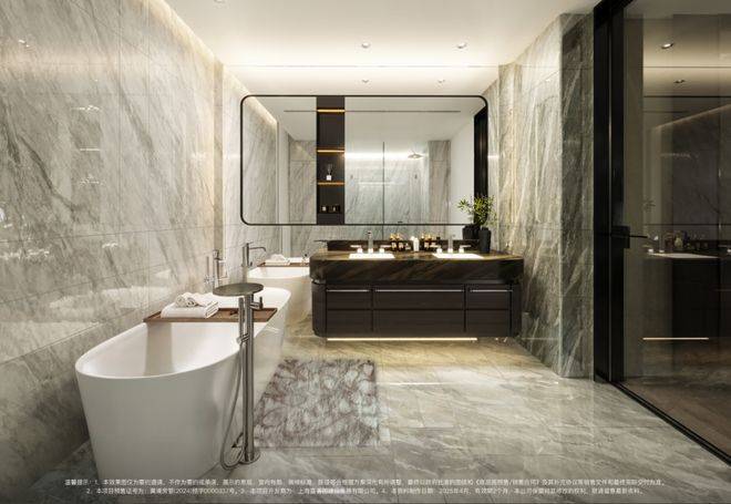 南向双卧为超级套房,双台盆、浴缸等配置堪比五星级酒店。