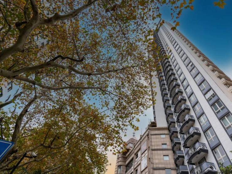 陕西南路888,无疑正是上海城心难得的高品质住宅。 首先是外立面,在梧桐树叶的簇拥下,白色的立面挺拔庄严,辨识度极高!