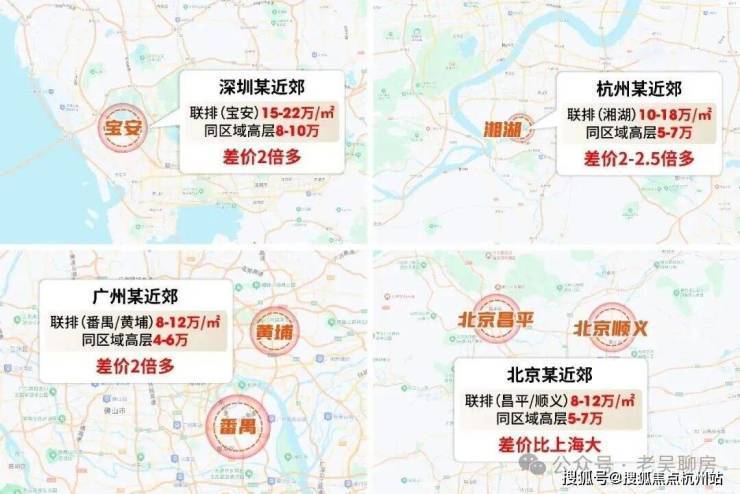 比如,上海近郊联排单价普遍在7-9万/㎡,总价900-1500万;而周边高层/洋房约4.5-5.5万/㎡,联排与高层比值仅为1.6-1.7倍