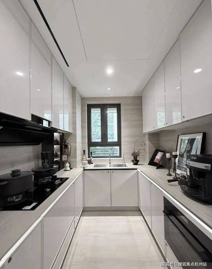 比如,厨房配了珍珠白吊柜、三组抽屉式拉篮合理搭配,调料架收纳、大容量踢脚抽、清洁用品收纳区,米面粮油、碗碟刀叉都可完美隐身。