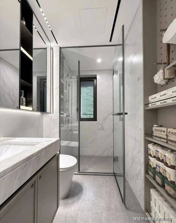 此外,像私享的入户梯厅可以做家庭小型储藏库;沙发后面的空间可以摆放大体量壁柜;大面宽阳台两侧也可作为定制储藏空间;