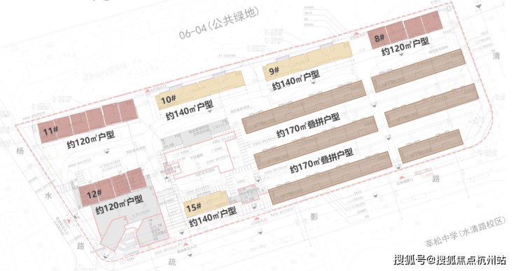 地块地处水清路与疏影路交叉口,东至水清路,南至疏影路,西至杨水路,北至用地红线,占地26200㎡,容积率2.5。