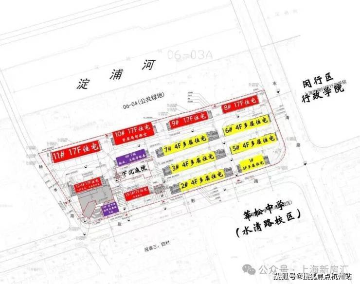 网上有人说这块地是闵行区污水处理厂拆迁而来,其实并不准确。闵行区污水处理厂在淀浦河与北横泾的交汇处,在这个项目以西约200米左右。项目地块这块地从90年代至今曾历经报春菜场、京代会所、小田园饭店、全季酒店、聚鑫阁饭店等。
