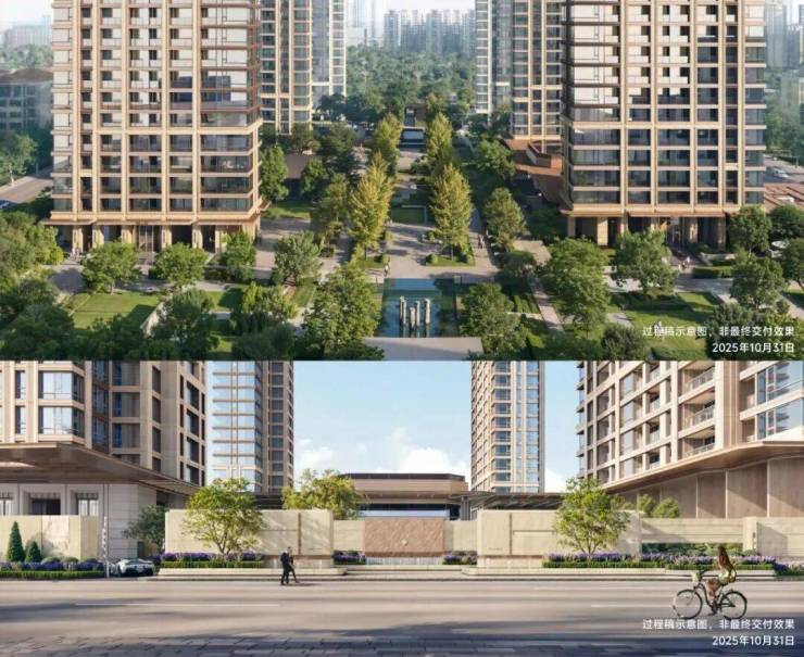 尤为引人注目的是约50米横向楼间距,这一尺度远超常规住宅项目,在小区内部嵌入一座相当于小型城市公园的公共空间,光是看效果图就能感受到。