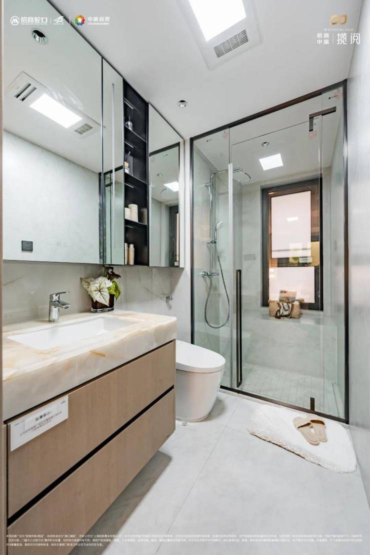 本以为卫生间会是“装修死角”?不不不!「招商中旅·揽阅」想打造奢华质感居所的决心从不是说说而已。项目主卫洗浴区/坐便区/盥洗区实现分段式干湿分离,起居动线更为合理有序。