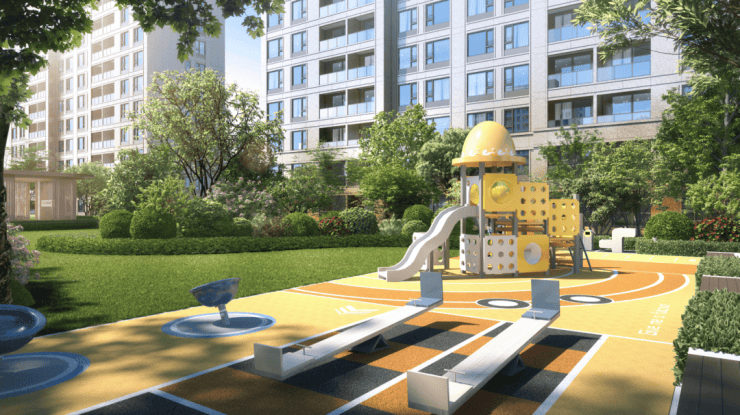 项目坐拥 天然双面滨水资源 ,南北两侧水系环绕,社区沿河道打造 滨水步道、亲水平台、观景花园 ,内部搭配 35% 高绿化园林,全冠移植香樟、桂花、樱花、紫薇等名贵花木,形成 “四季有景、步移景异” 的生态格局。清晨沿河慢跑、傍晚临水散步,闲暇时在社区花园休憩,在家门口就能享受江南水乡的静谧与诗意,远离城市喧嚣。