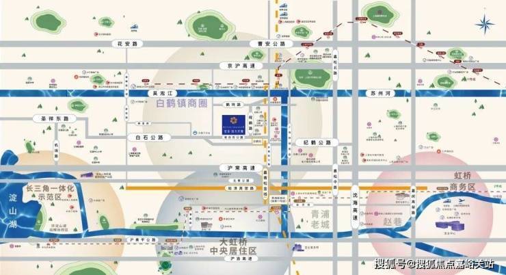 交通配套:市域铁路:未来市域铁路嘉青松金线,将贯穿嘉定、青浦、松江和金山,届时白鹤将与青浦新城直接连通,并换乘轨交17号线和沪苏嘉城际线。双维交通:坐享轨交11号线与轨交17号线青浦“纵贯线”交通辐射,坐享长三角节点交通优势。