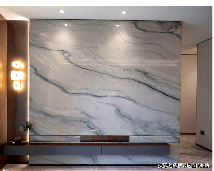 电视背景墙选用带有东方意蕴的万里河山石材,颜值超高!