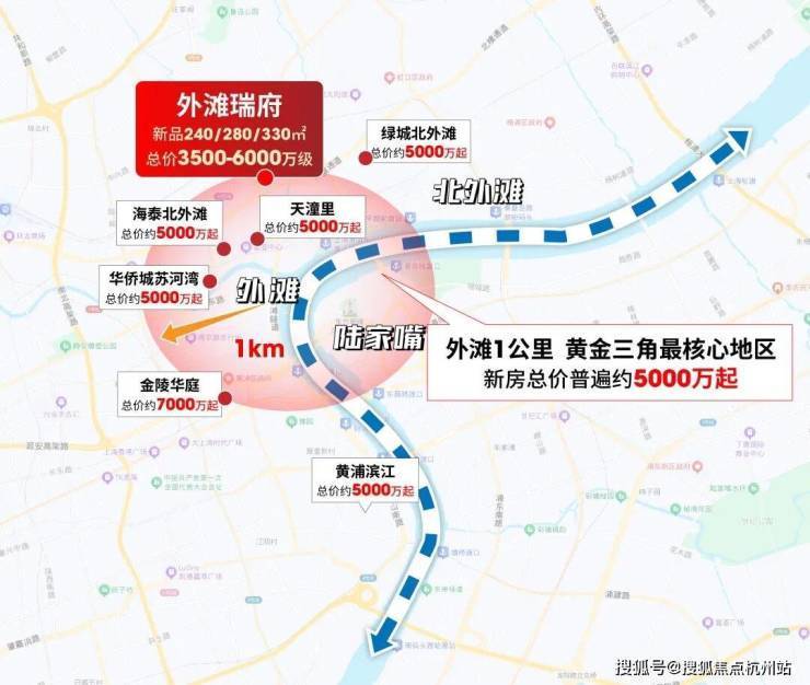 而外滩瑞府核心竞争力,在于其对“外滩核心圈”的精准占位(直线外滩约1公里)
