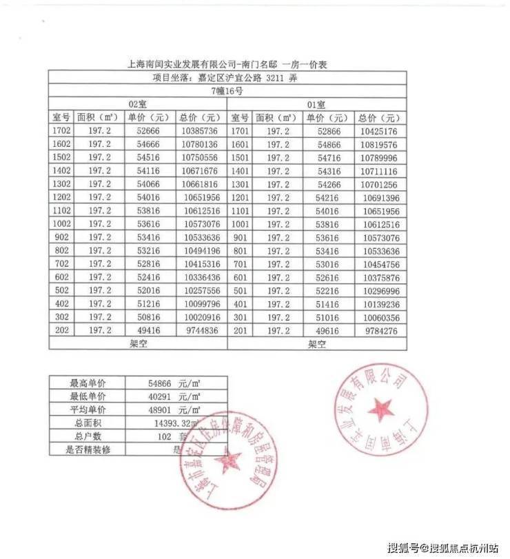 项目一房一价表▼