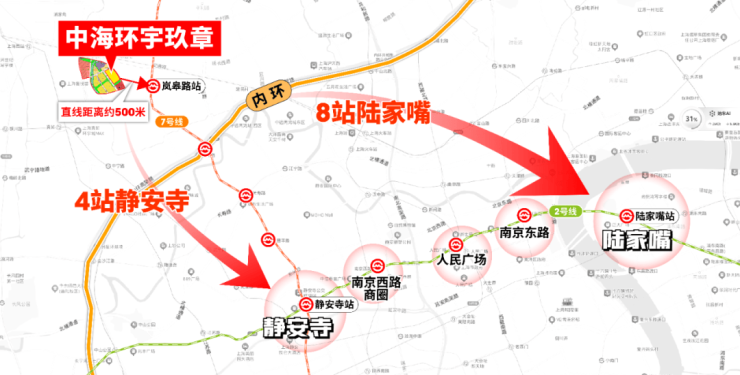项目直线距离20号线广泉路站(在建)约400米,7号线岚皋路站约500米,4站静安寺;在此换乘2号线,更能一路畅达南京西路、人民广场、南京东路、陆家嘴(全程仅8站)等上海顶级板块。