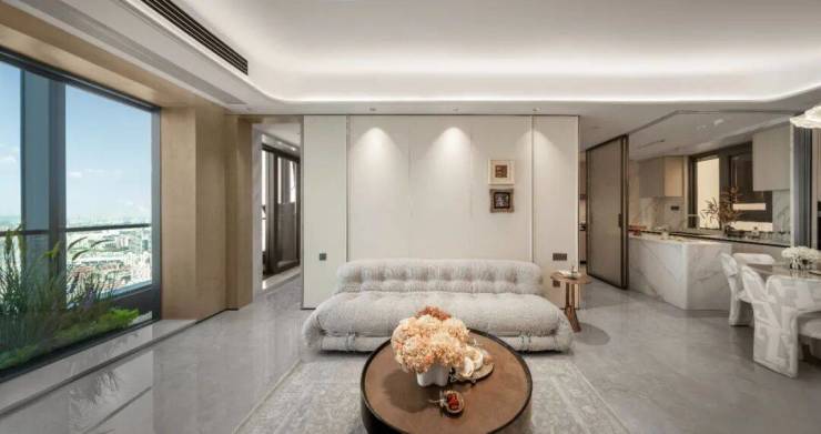 家的核心区变得更开阔:客、餐、厨连成一体,进深可达8.6米,整体LDK空间接近30㎡,尺度感媲美市面上140㎡以上的产品,处处都有生活场景的细节。