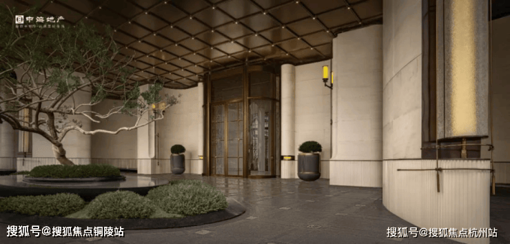 近距离看,项目的入口细节之处又不失奢华,尤其是大量名贵石材(安哥拉黑石材)的运用绝对是大手笔,椭圆形水池搭配波光粼粼的水景,这里还种植了一株约7米高的铁冬青,宛如翡翠屏风,豪门大院的气质扑面而来。