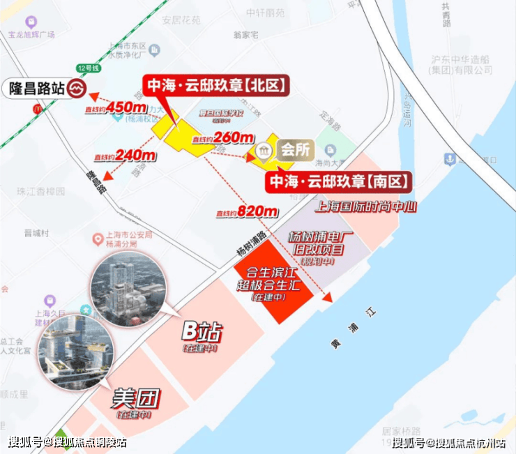 南面,美团、B站等互联网大厂在项目南面临江一字排开,还有对位前滩的高端商业在建(合生汇等),对位徐汇滨江的休闲配套(公共绿地约48.46公顷,滨江跑道、步道、骑行道现已全线贯通)!