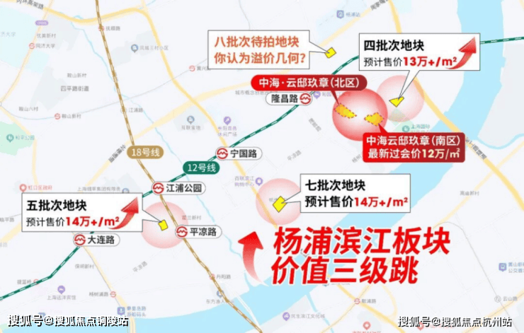 今年的杨浦滨江摁下房价加速器,土拍经历从6.9万/㎡—9.2万/㎡,涨约30%!新房未来预计也将迈上13-14万/㎡!