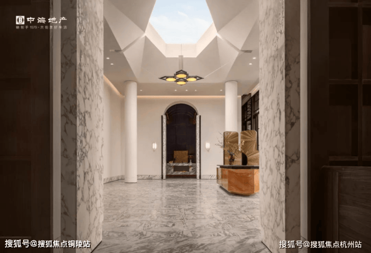 进入大堂,抬眼可见的是由一块完整的巨型玻璃组成的天窗,约7.9米高的钻石切面整玻吊顶+约500余块大花白奢石铺就的地面,让人每一次走进来都能感受到自然光线的包围,仪式感十足!