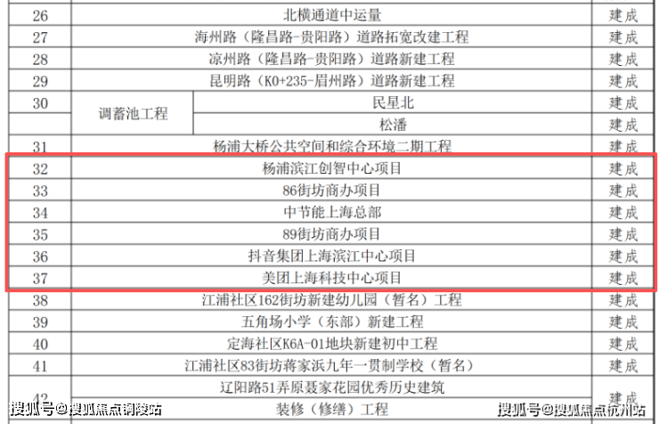 这份来自杨浦区官方公示的项目清单,清晰标注了从“新开工”“在建”到“建成”的全周期进度。其中,抖音、美团、滨江创智中心的全面建成,将杨浦滨江的发展确定性,从蓝图实实在在落地为实景。