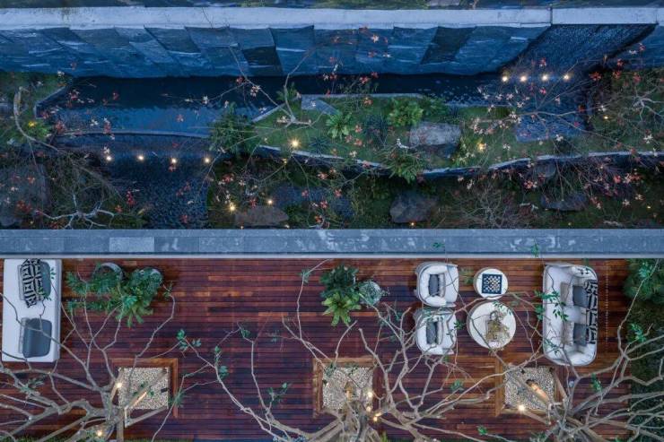 并参考世界度假酒店休憩区,在5号楼下打造一处极具松弛感的度假水院——【泊心逸境】,可在此独对山川,亦可与聆听溪谷潺潺之音。