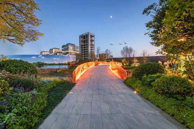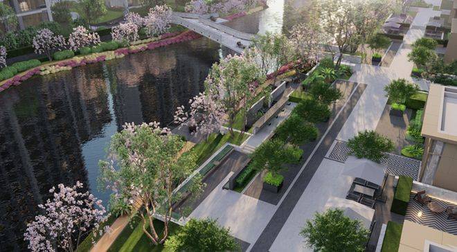 国贸地产代建了一座约1.8万方的滨河市政公园,而且三座岛屿社区都有不同的主题,并设置了非常丰富的景观节点。由于2条天然水系的存在,整个社区可以被环绕成一个紧密的小型生态系统,有效地形成一道环境保护屏障。同时,每块土地以及组团都可以拥有独特的水系景观,让人眼前一亮。一旦从小区入口进入,从外部延续而入水系美景又将与生活场景、活动空间有机结合,景观设计既有质感又不失烟火气。