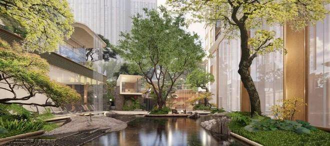 在社区内部,遵循豫园山脉、水脉,以现代化手法表达,形成立体的山水园林景观,包括立体的山林、引水入园、庭荫树影。