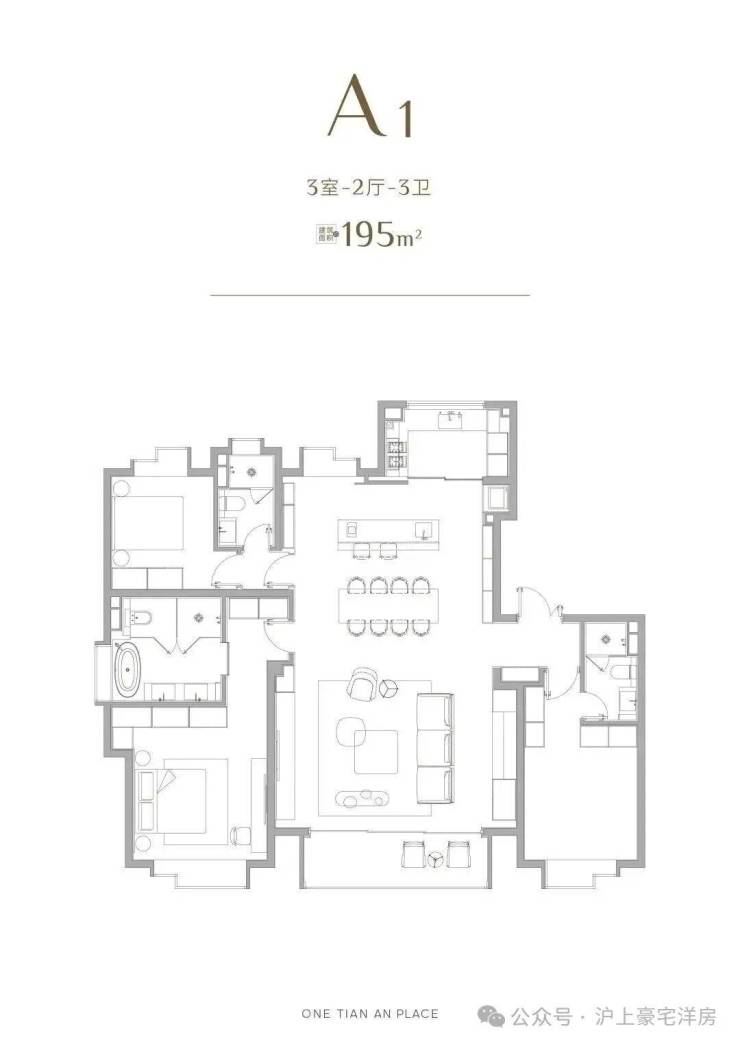 建面约195㎡大平层:终极改善顶配户型,阔绰横厅格局、全景落地窗设计,视野开阔无遮挡,主卧尊享独立卫浴、步入式衣帽间,大宅风范尽显,满足高端家庭对居住品质的极致追求。