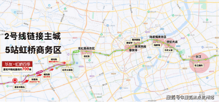 这条线路的能级超乎想象:往东2站是天空万科广场,3站是网红打卡点蟠龙天地,5站直达虹桥枢纽,无缝换乘2号线、10号线,直抵静安寺、陆家嘴、人民广场。