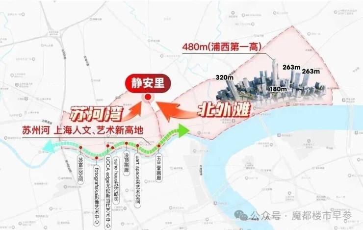 规划能级超群 :北外滩开发体量超840万方 (陆家嘴核心2倍) ,480米新地标领衔5栋300米+、13栋200米+摩天建筑群,打造浦西全新制高点