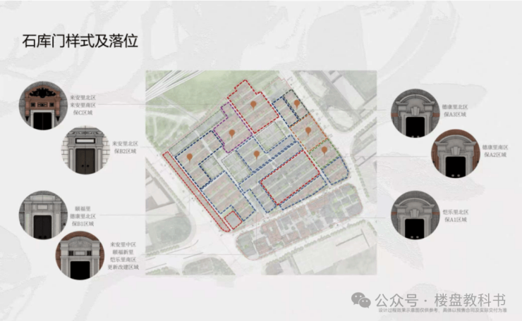 七坊、三十二弄、七大石库门串联起7大组团,八个不同规制的坊门,散落于组团之间,营造出了归家动线上的连续仪式