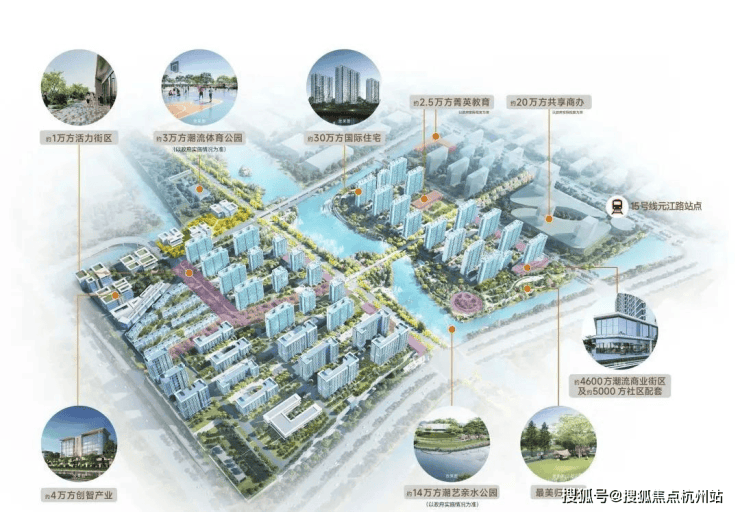 该项目将公园与天然水系整合到社区中,通过一个约3万方的运动竞技公园和一个约14万方的滨水艺术潮流公园,结合城市绿地,共同构建约20万方的滨水双园,最终在自然生态基础上打造出超级TOD生活场域。