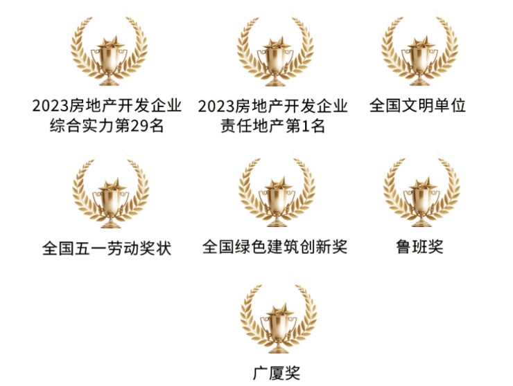 获得了国家高新技术企业称号及专利170余项,实现绿色建筑星级认证全覆盖。累计获得100多项荣誉及行业认证。