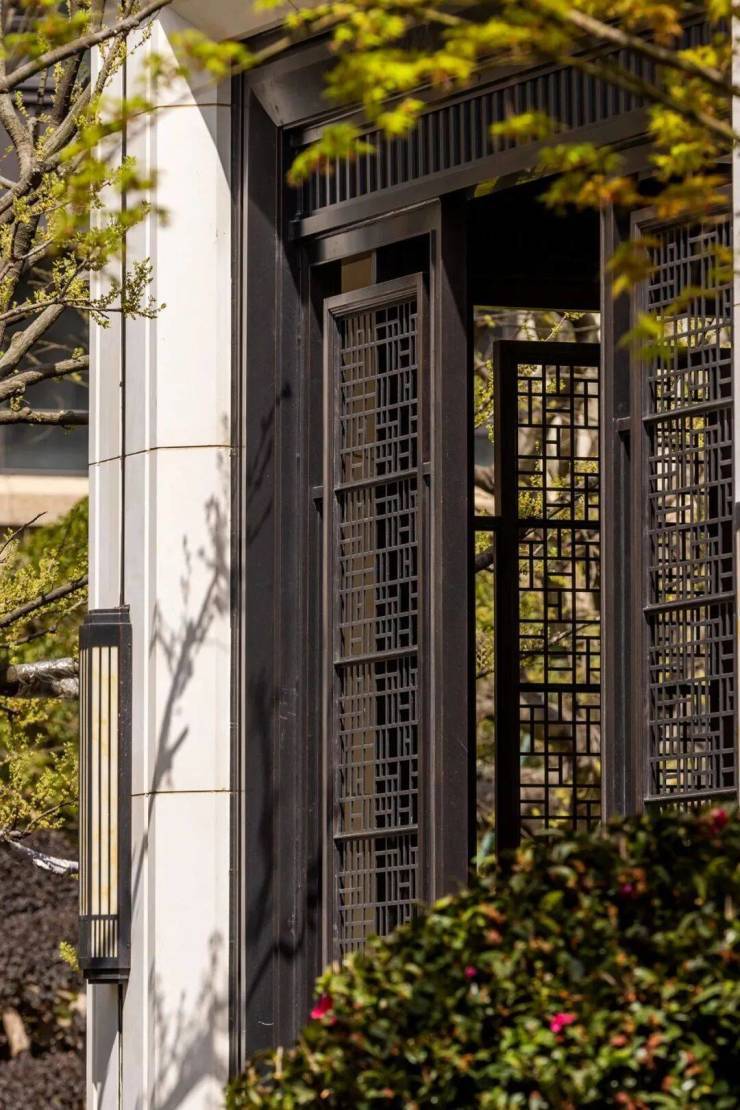 就连庭院格栅也经过造型化处理,镂空图案随日光移动形成动态光影,每一处细节都堪称“微缩艺术品”。