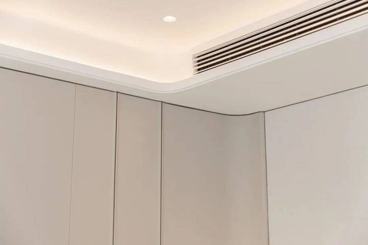 全弧美学:让空间告别“棱角”踏入样板间的第一秒,你会发现这里几乎“看不到一个直角”:墙面转角、吊顶边缘、门套线条,甚至石材台面与柜体边缘,均以流畅圆弧替代生硬直角。